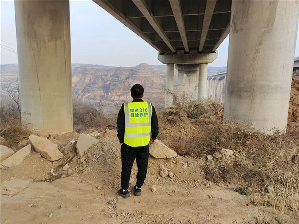 國道310養(yǎng)護二工區(qū)每日巡查,路面、橋梁、邊溝、涵洞、隧道、排水系統(tǒng),清掃路面,養(yǎng)護工清掃保潔。
